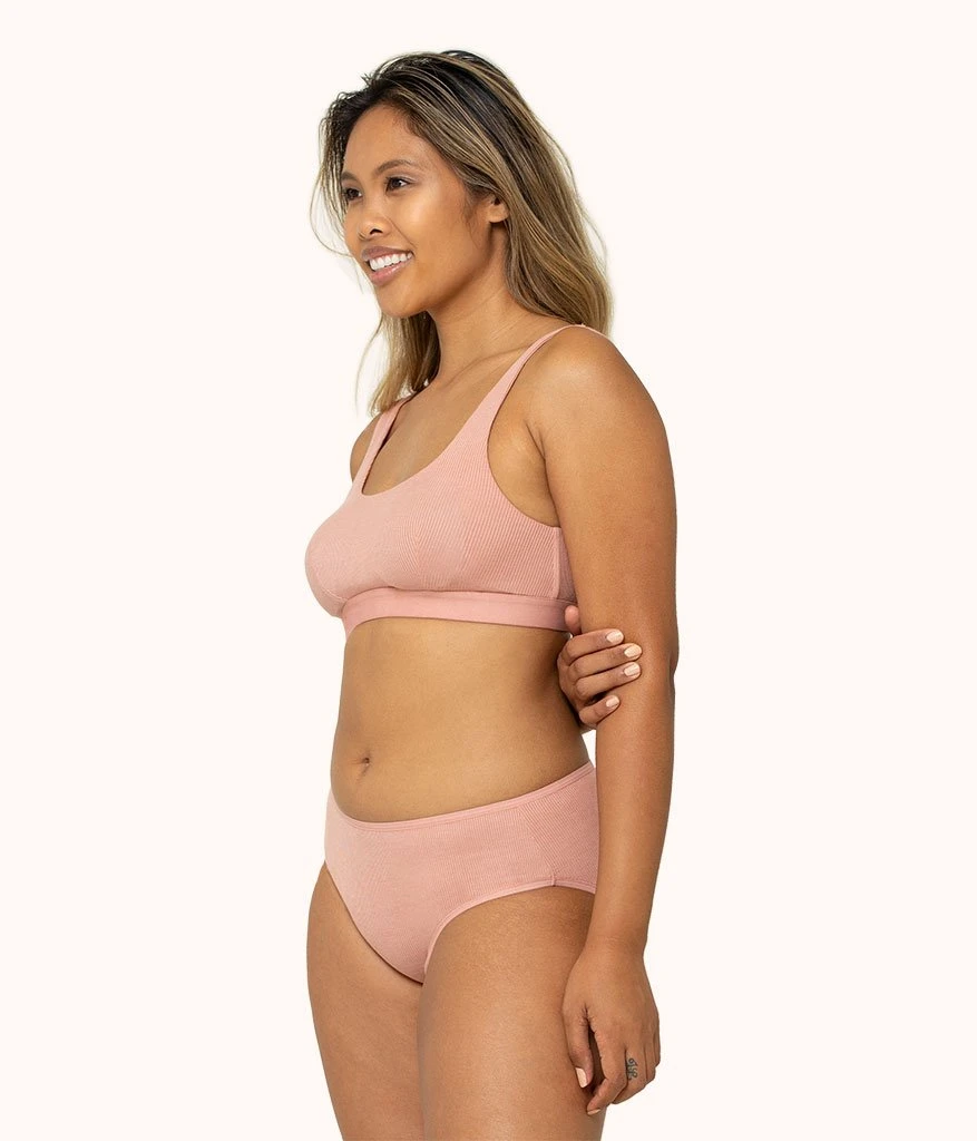 The Ribbed Scoop Back Bralette: Shell Pink